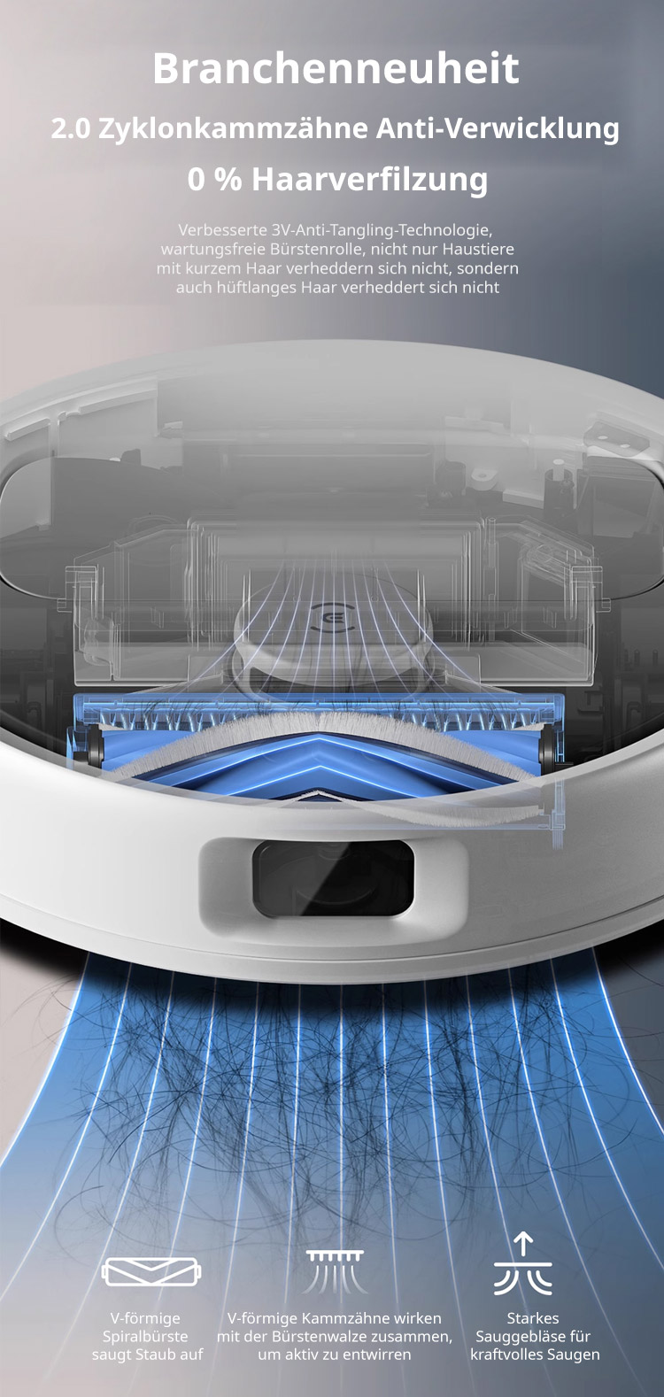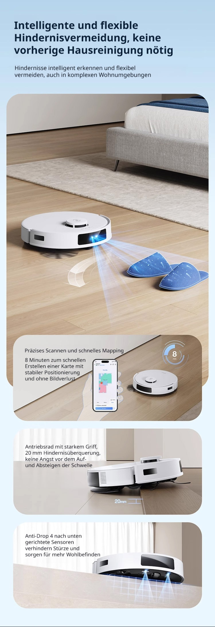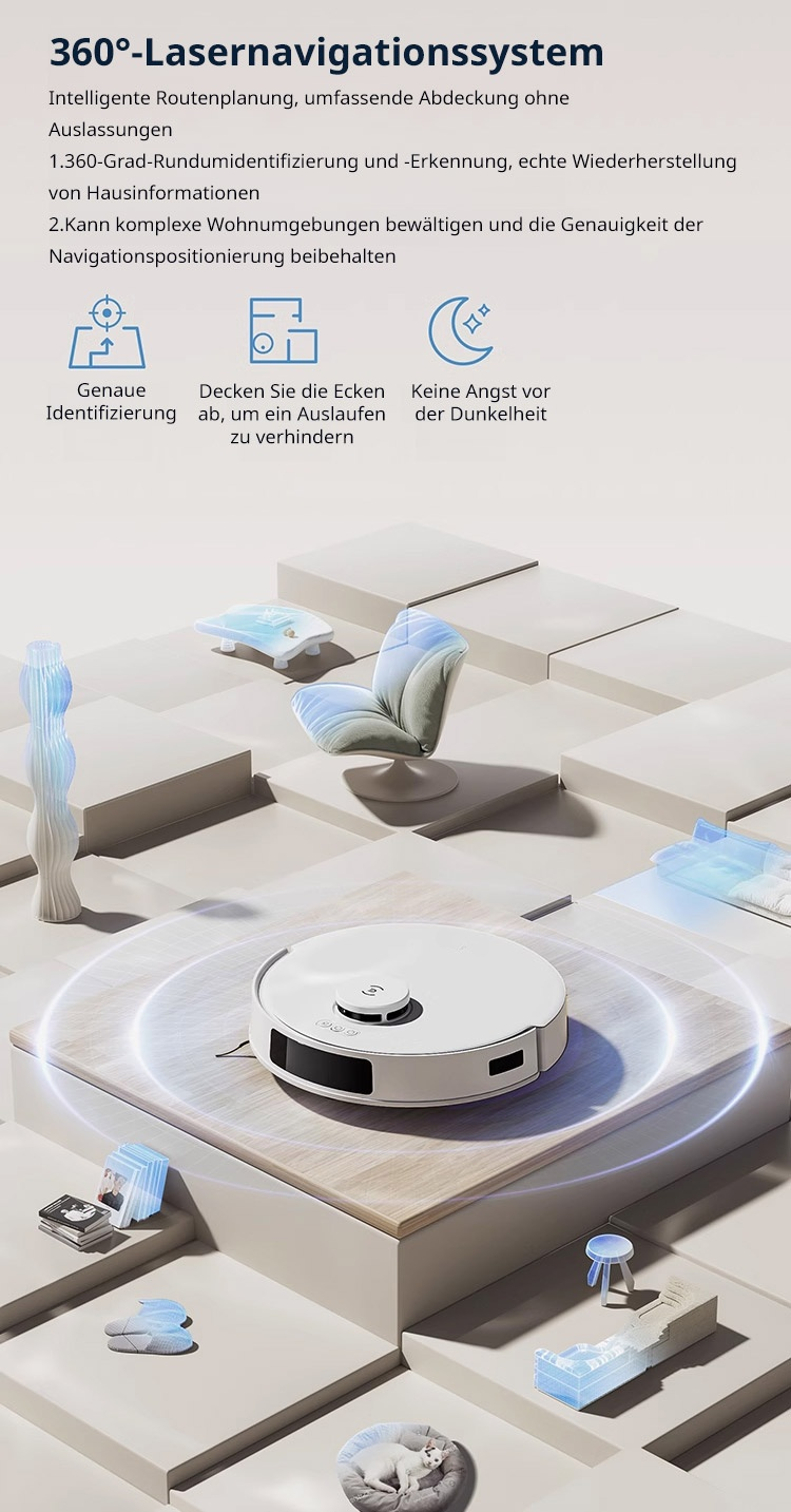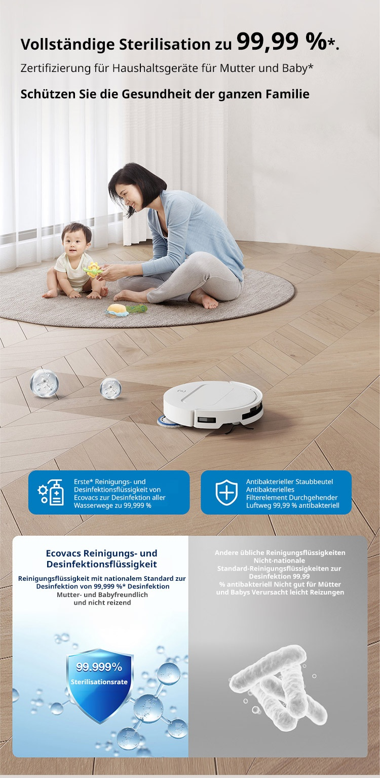 ECOVACS AI-Saugroboter ✨ Reinigt bis zu 500 Quadratmeter mit einer einzigen Ladung ✨ Kann Staub, Haare, Kaffeeflecken und Fett gründlich beseitigen, mit einer Sterilisationsrate von bis zu 99,99% ✨