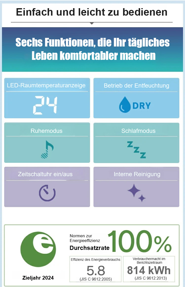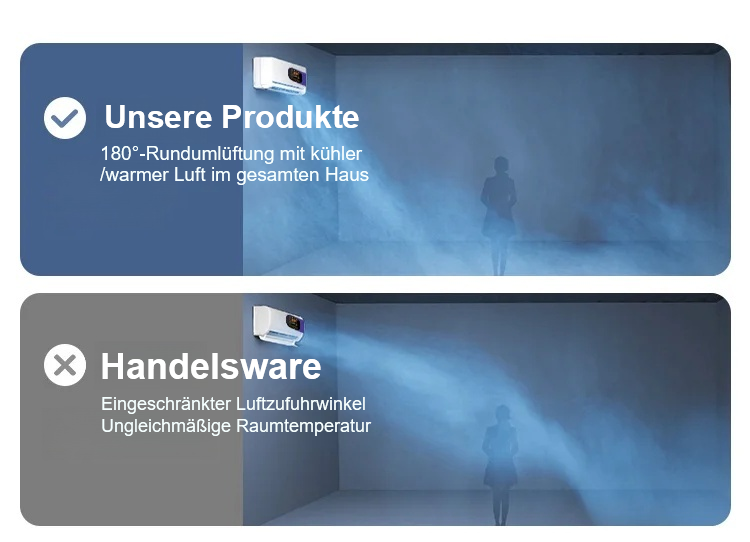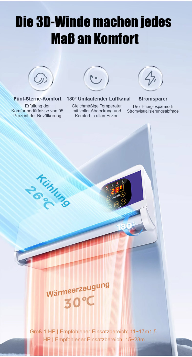 Verbraucht in zwölf Stunden nur eine Kilowattstunde. 🌟 Bläst in drei Sekunden kalte Luft und senkt die Temperatur schnell auf sechzehn Grad Celsius. 🌟 Keine externen Geräte nötig, einfach einstecken und verwenden. 🌟