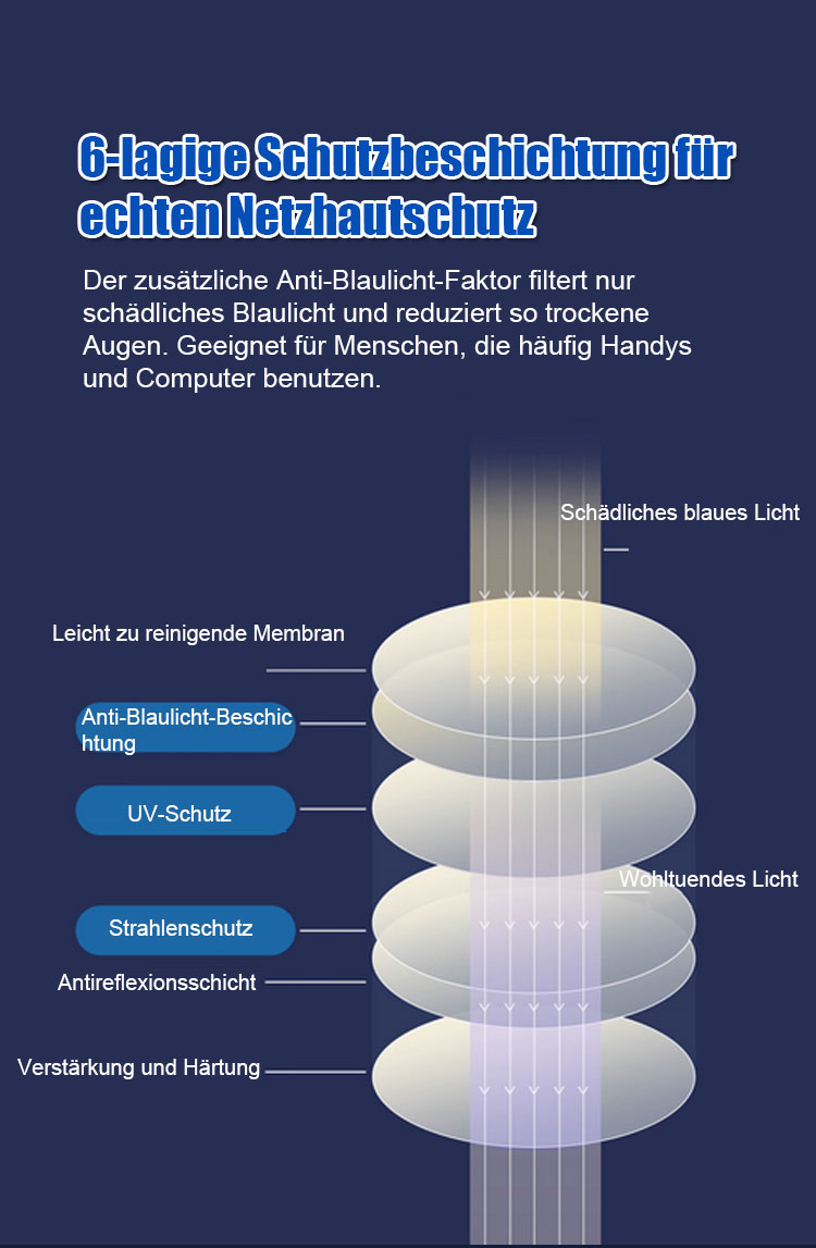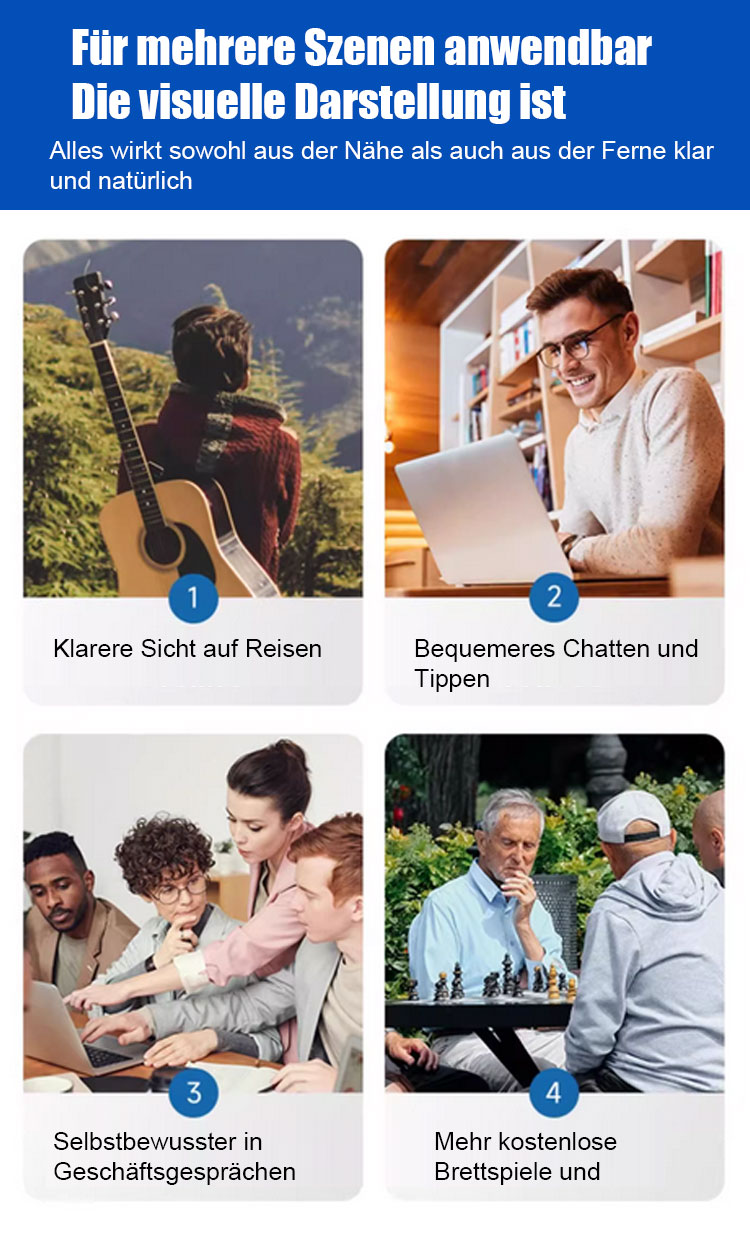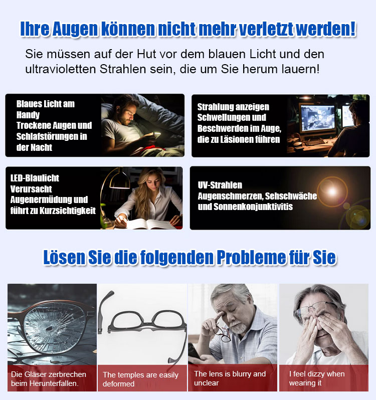 Kann bis zu 50 Jahre lang getragen werden ✨ Die Dioptrienzahl der Brille passt sich automatisch zwischen 100 und 700 an Ihre Sehbedürfnisse an ✨ Blockiert 99,9 % des Blaulichts ✨