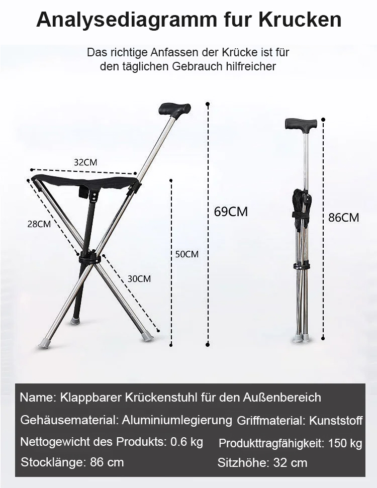 In 1 Sekunde zum Stuhl entfalten, in 2 Sekunden zurück zum Stock 🌟 Kippen beim Sitzen ausgeschlossen. Gewinner des Red Dot Design Awards 🌟 Rost- und verformungsfrei für 50 Jahre🌟