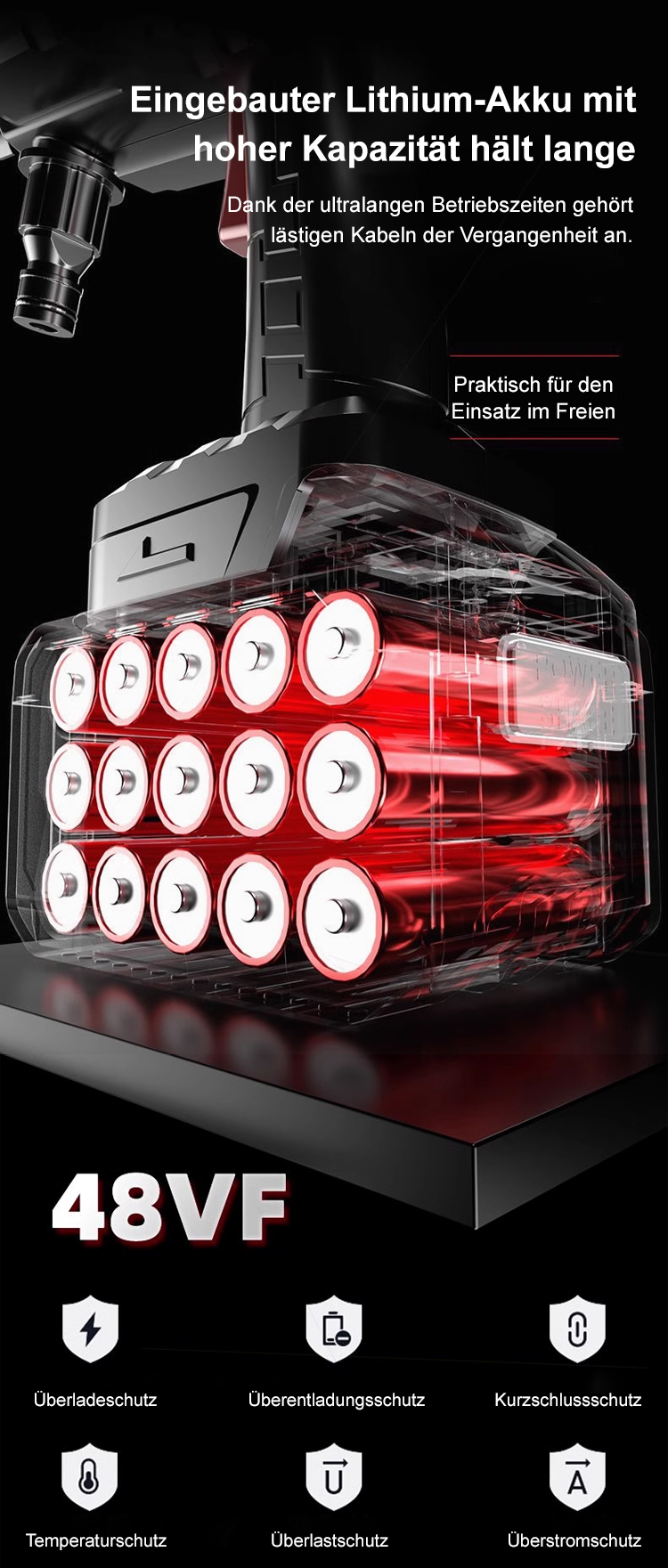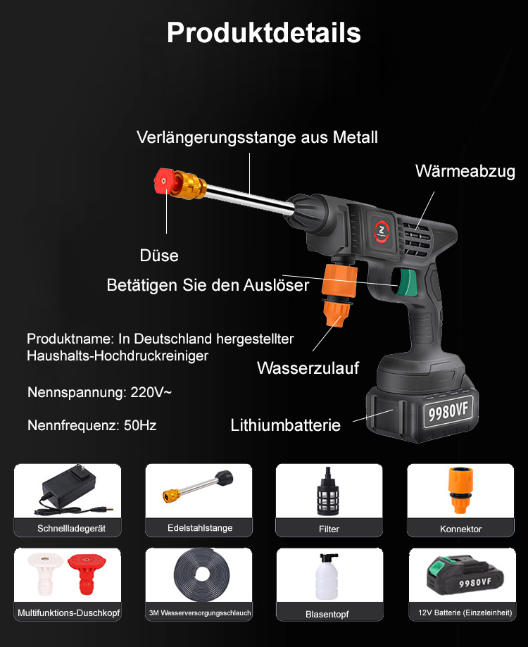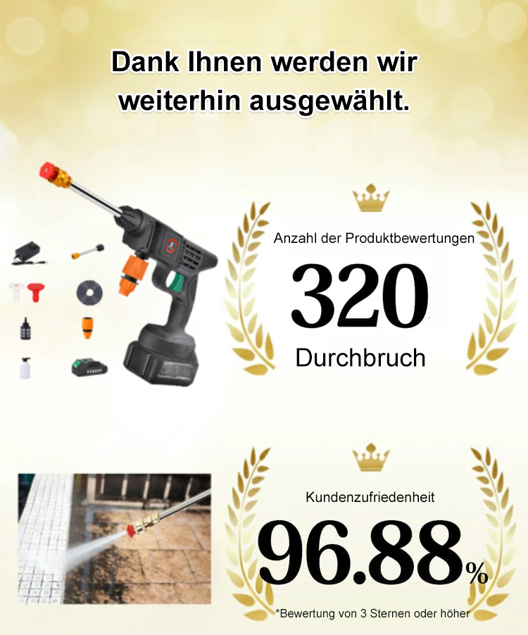 Gemeinsam von Kärcher und Bosch in Deutschland entwickelt, verfügt die Düse über 12 patentierte Technologien, die die Erzeugung von Schaum und Wasserstrahl ohne zusätzliches Zubehör ermöglichen. Nach vollständiger Aufladung können bis zu zehn Autos hintereinander gereinigt werden. Die Aktion endet in den letzten 3 Stunden.