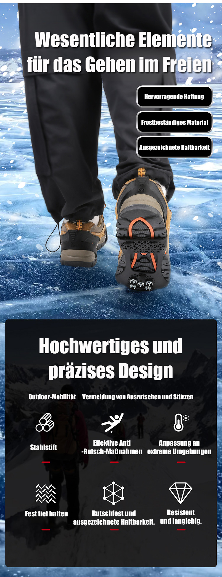 Außenschneerutschfeste Schneegreifer für Schuhe🌟Nur 1 Sekunde – Ihre Schuhe werden sofort zu professionellen Wanderstiefeln🌟Aus hochdichtem Manganstahllegierung gefertigt, nutzbar bis zu 50 Jahre lang🌟