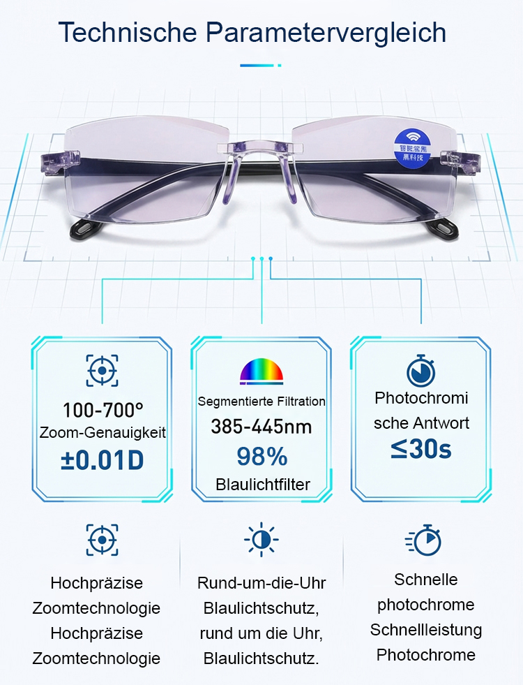 VisionPro™ Adaptive Auto-Fokus Brille ✨ Stufenlos -7.0 bis +7.0 Dioptrien ✨ Rezeptfrei & Sofort Klar ✨ 6g Ultraleicht mitNano-Technologie ✨ Express-Versand aus Hamburg